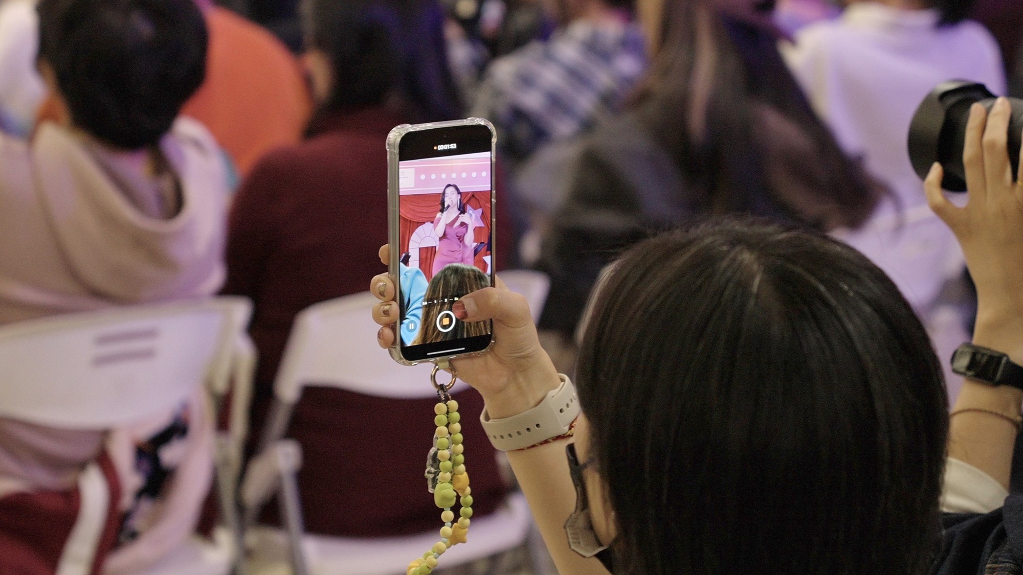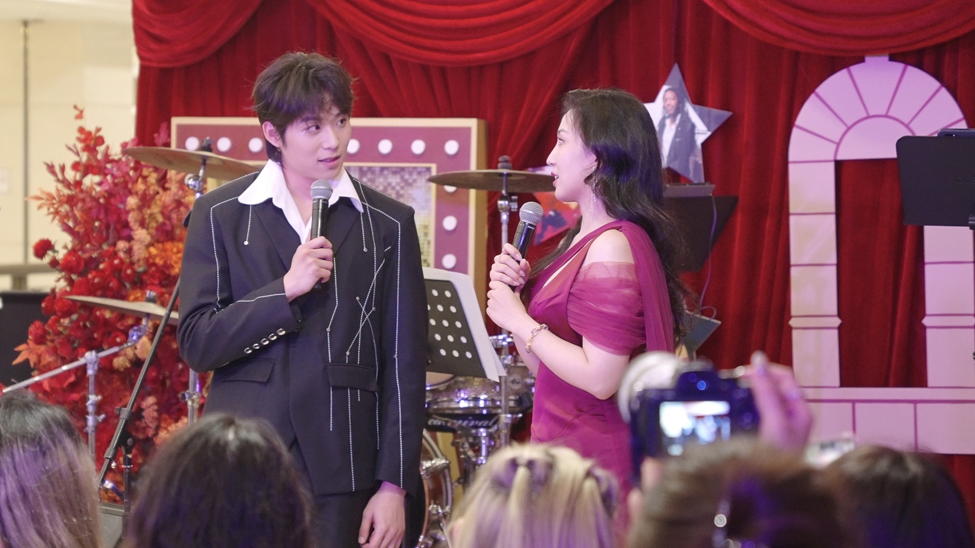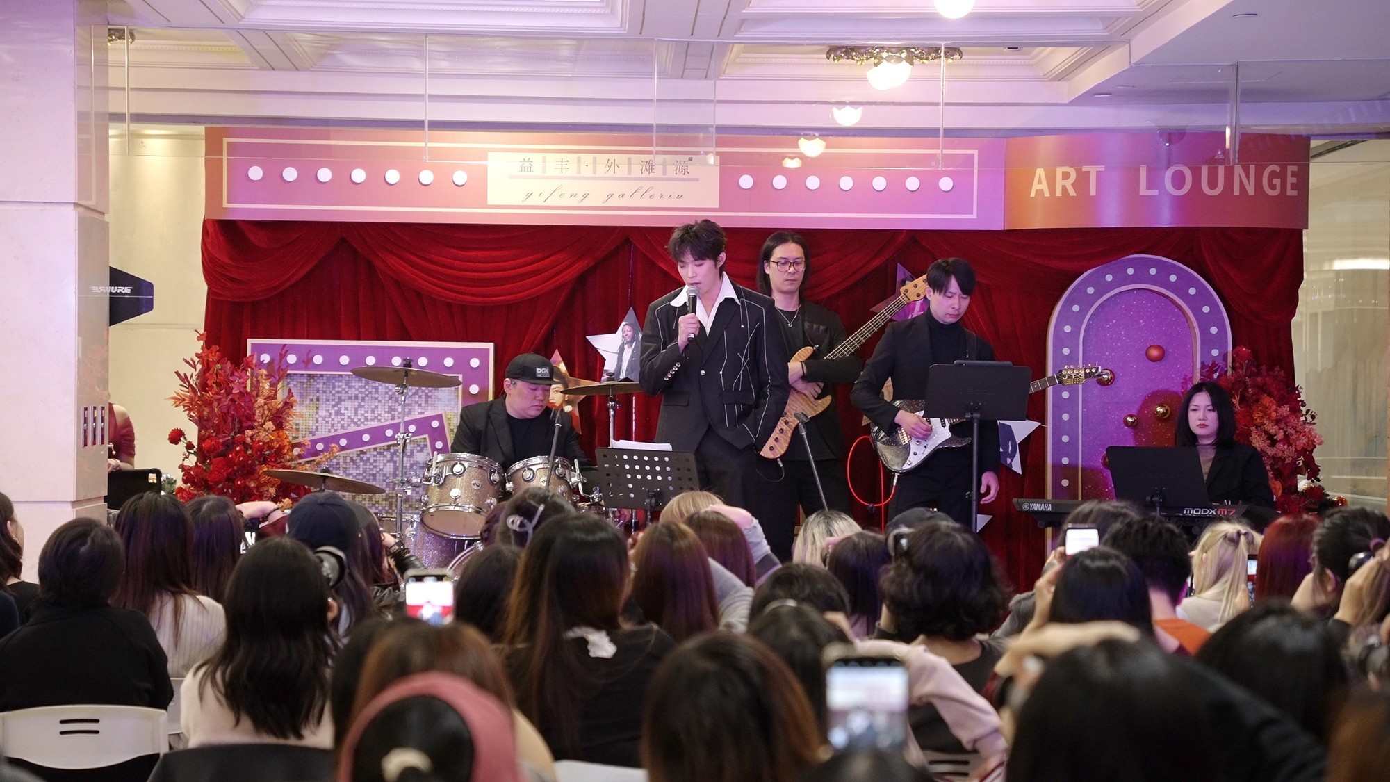 午后阳光透过玻璃穹顶洒在商场中庭,远远就能听到悠扬的歌声,益丰·外滩源2楼中庭座无虚席、满满当当,观众们举着手机记录下精彩瞬间。音乐剧演员邱俊阳、王梓庭联袂献唱,将经典剧目选段演绎得淋漓尽致。作为湖南卫视《2025声鸣远扬》全国33强选手,邱俊阳的出场引发粉丝阵阵欢呼,人群中的应援牌与闪光灯交织成一片。