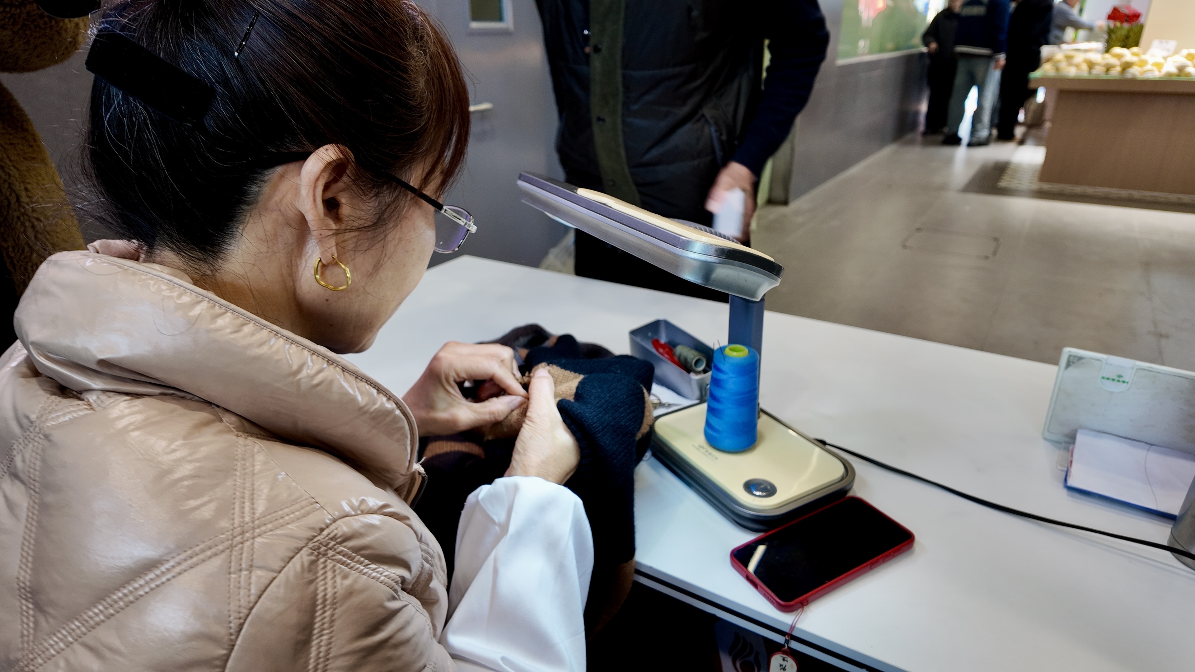 原来,“宁家·曲沃市集”虽面积不大,但其却以“15分钟生活圈全能管家”为定位,精准嵌入多项便民服务:提供15元便民理发服务店——“快剪”,拥有三十多年织补经验的“何菊花精工织补”,共享洗衣机……