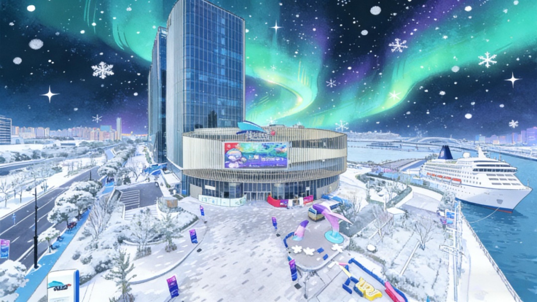夜幕渐深,“摩尔曼斯克极光之夜”惊艳登场!飘雪夜空中,浪漫极光如梦似幻地舞动,滨江音乐快闪同步开启,流动的旋律与璀璨光影交织,用热情点燃冬夜,氛围感直接拉满。