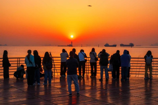翌日清晨,赴一场与朝阳的约定!前往吴淞口日出广场或追光栈道,静候吴淞口的第一缕阳光划破天际。看晨曦渐次染红江面,见证朝阳跃出水面的震撼瞬间,让温暖光芒照亮整日的好心情。偶遇御风而行的骑行爱好者,或是踏光奔跑的晨练者,用这份蓬勃活力为一天注入满满元气。