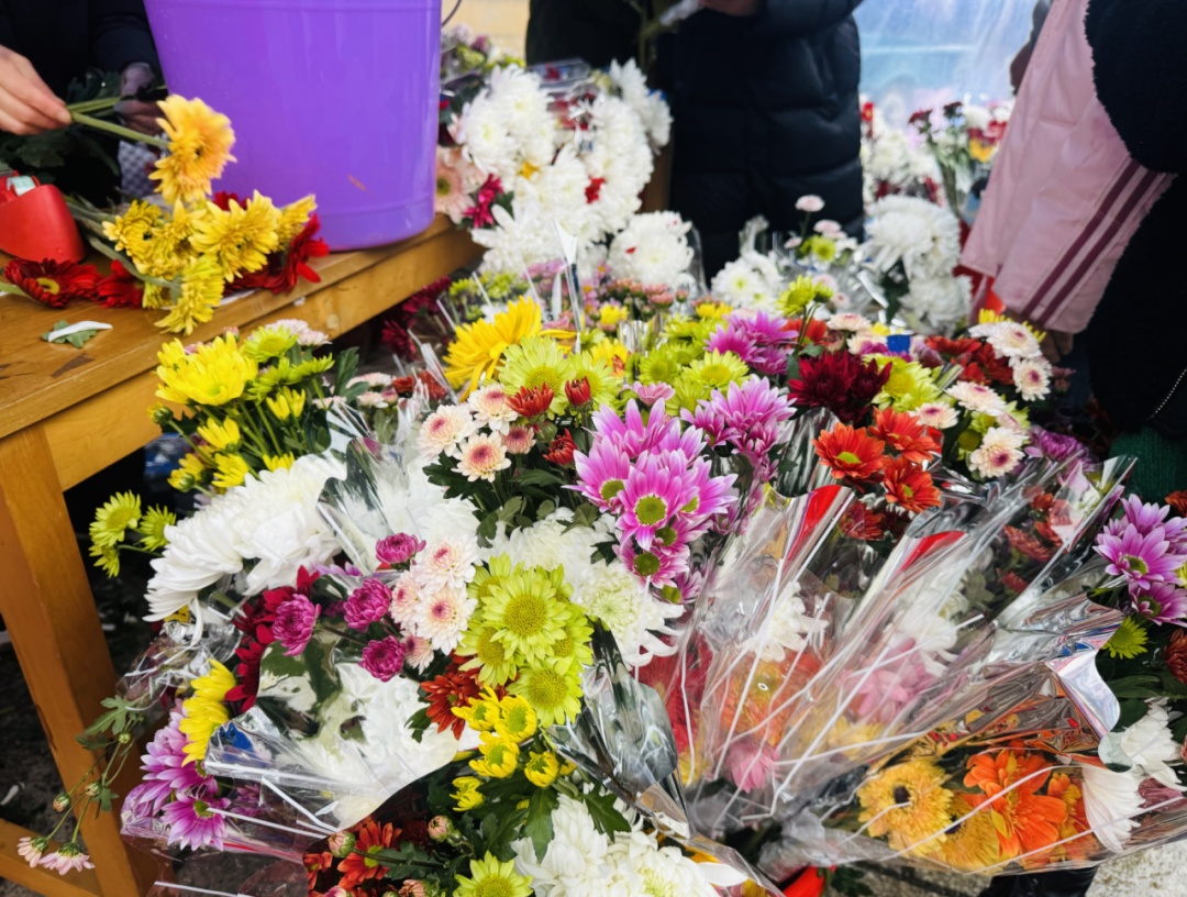 上午7点,赶早祭扫的市民陆续抵达松隐山庄,交警和安保人员正疏导周边道路及停车场的车流。现场小雨淅沥、气温较低,工作人员还为祭扫市民提供价格实惠的鲜花等物品。