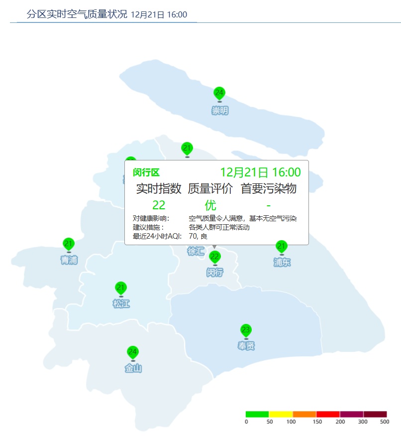 闵行区AQI为22,优。