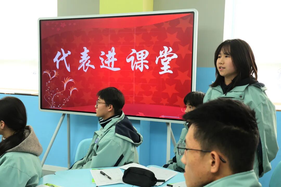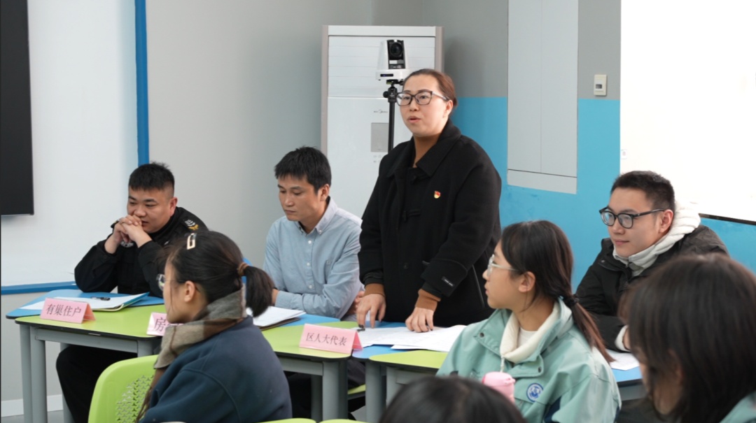 随后,她与同学们分享了人大代表联动履职机制:“当社区遇到难以解决的问题时,首先可以通过镇人大代表反映;若该问题超出镇级职权或解决能力范围,可以通过区、市人大代表继续呼吁推动问题协调解决。接力传递民意,确保民生关切能够逐级传递、层层推动。”