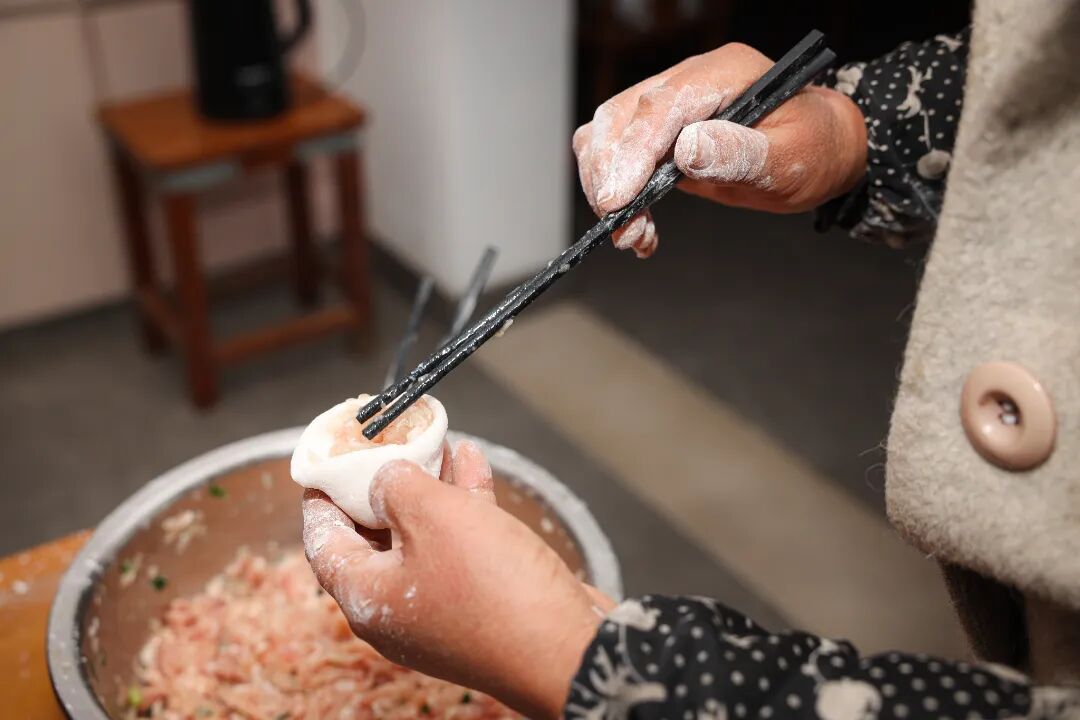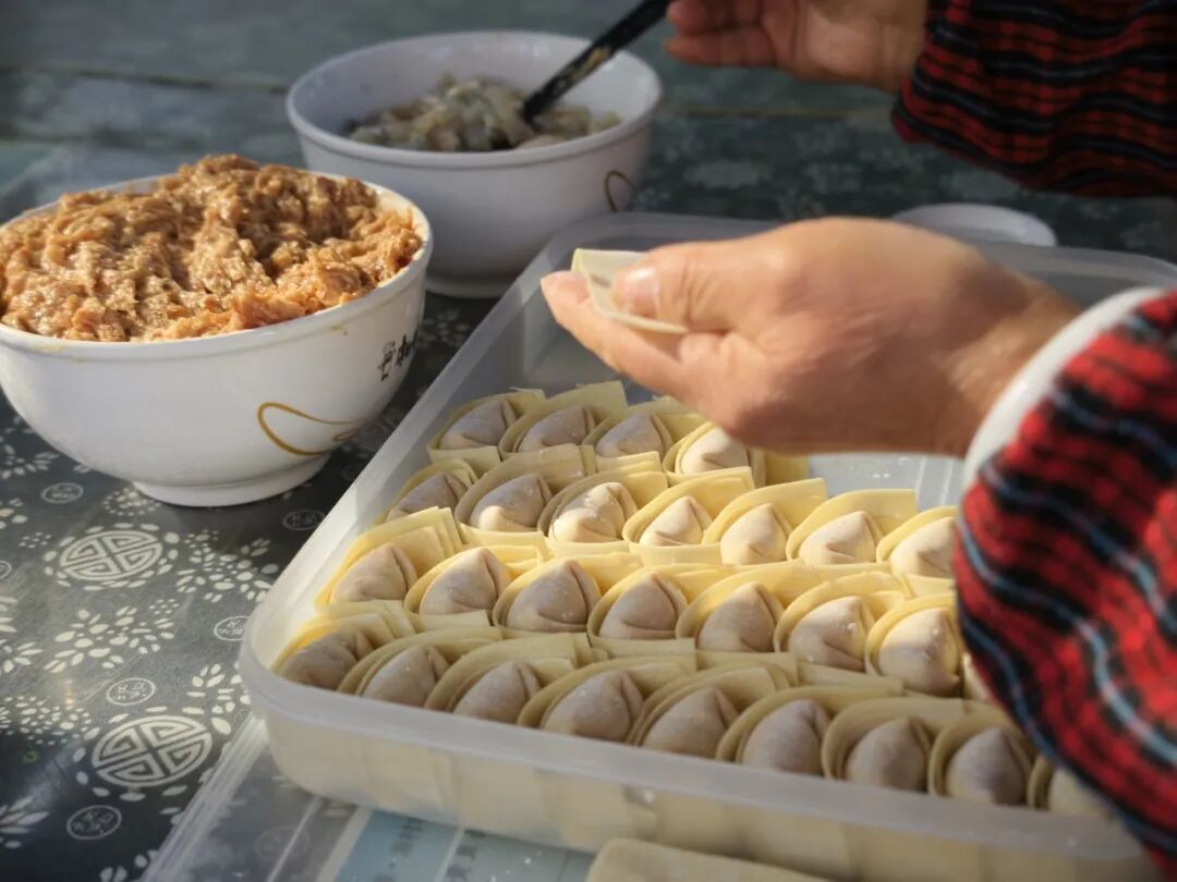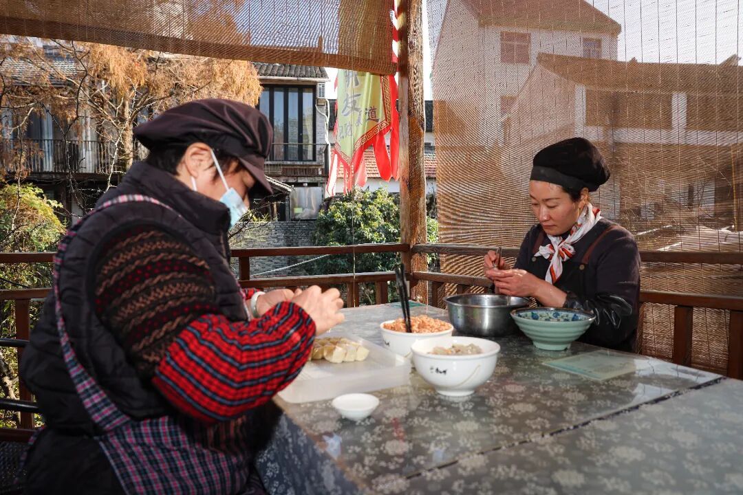 除了黄鱼馄饨,渔村不少人家还有着冬至前后做汤圆的习惯。在村民李秀华家中,她和几位老邻居正围坐在一起,一边聊家常,一边揉面、搓圆、填馅。其中,馅料的风味是关键。