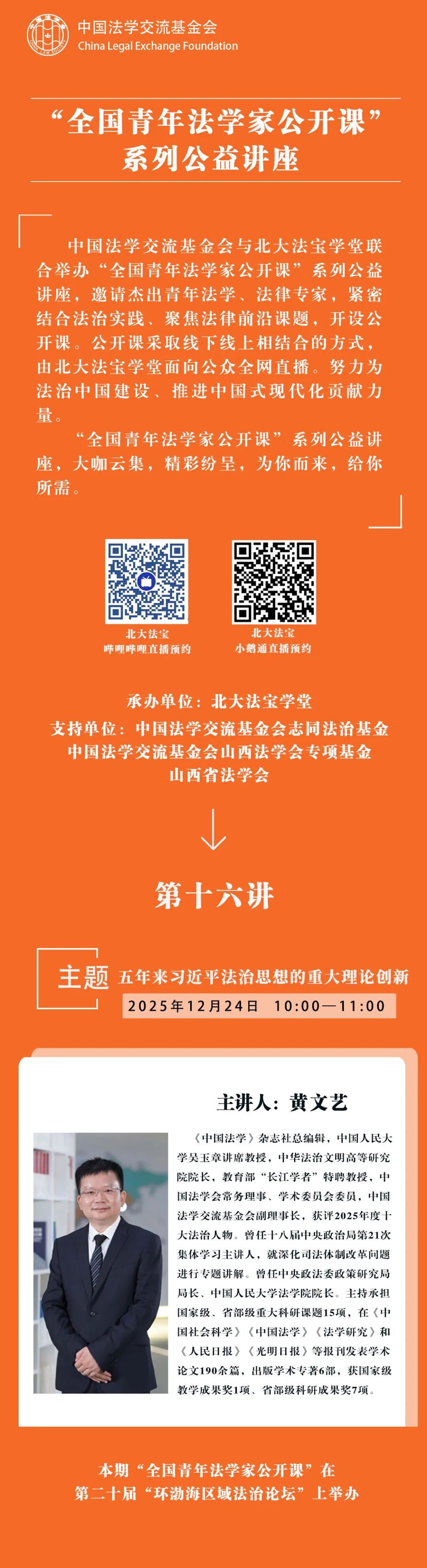 预告|黄文艺教授主讲“全国青年法学家公开课”系列公益讲座第十六讲