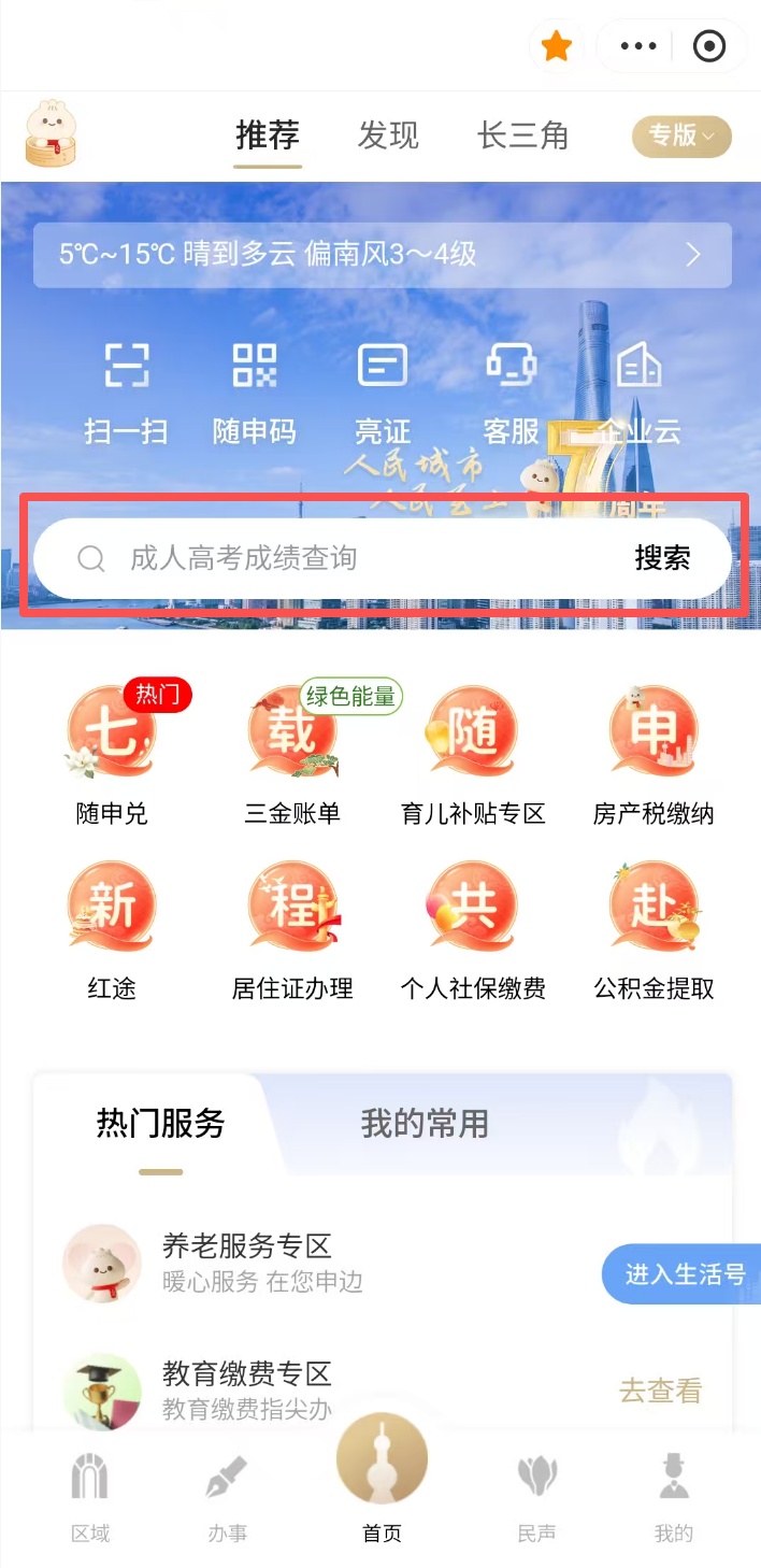 首页搜索“居住证办理一件事”,或通过下方菜单栏“办事”-“居住证办理一件事”进入服务。