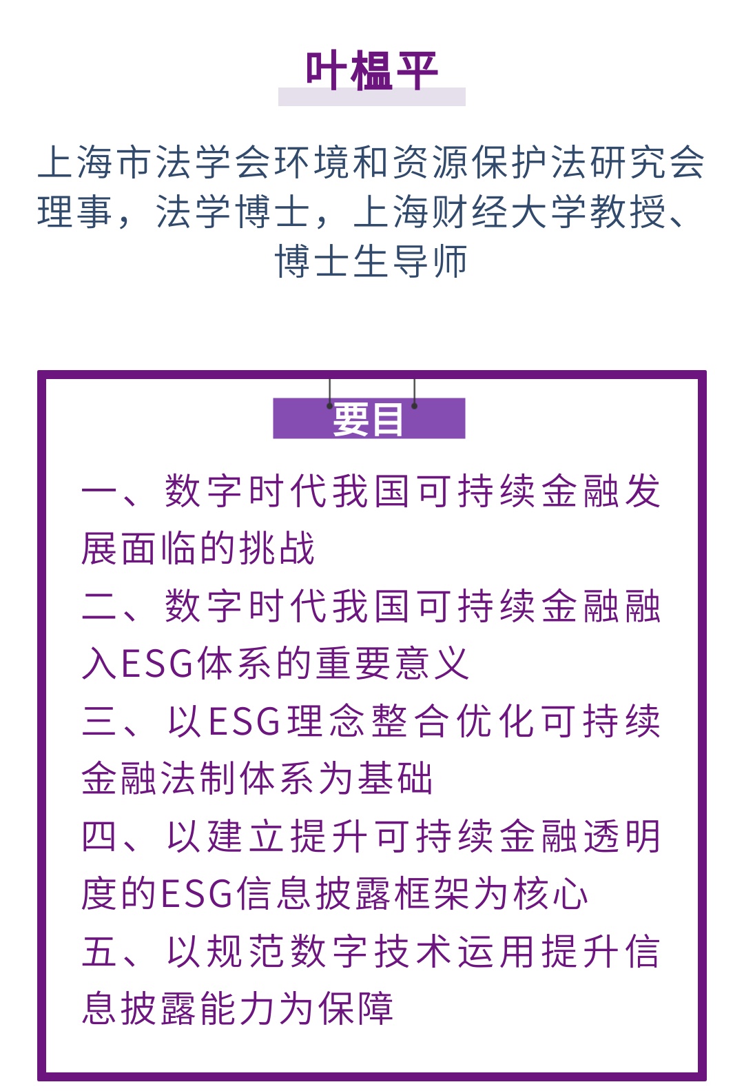 叶榅平:数字时代我国可持续金融融入ESG体系的法治路径