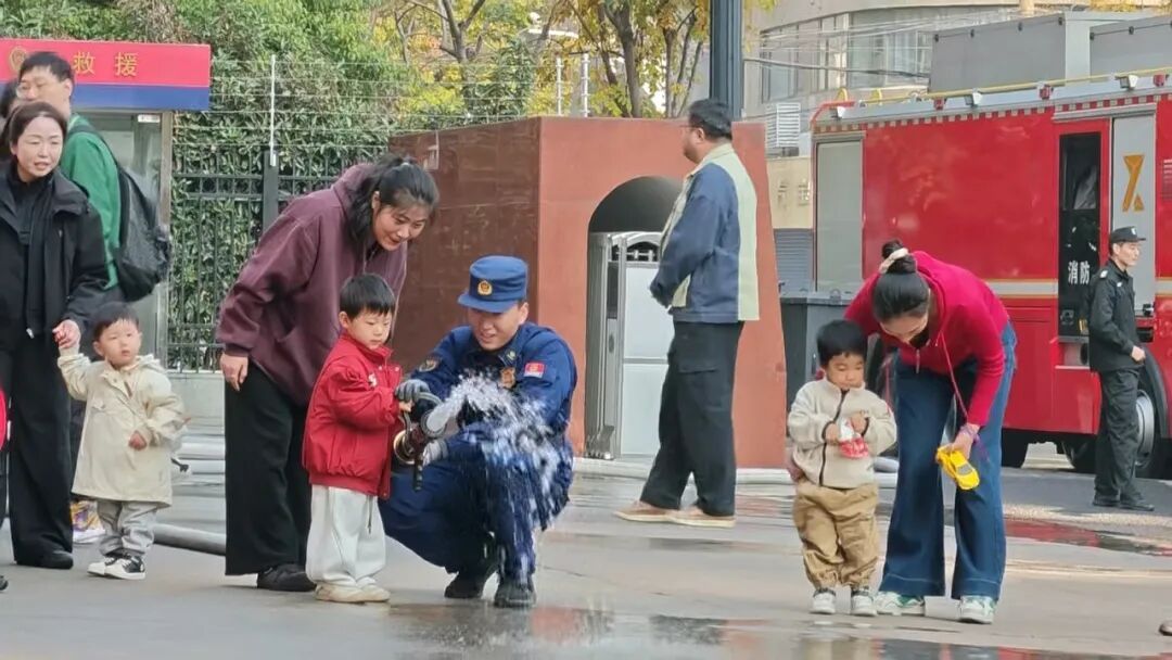 活动现场设置了丰富的互动体验项目。萌娃们在家长的陪伴下,兴奋地体验了消防水枪。亲子家庭在消防员的专业指导下,体验了逃生绳的使用,在互动中掌握了实用的消防安全知识。