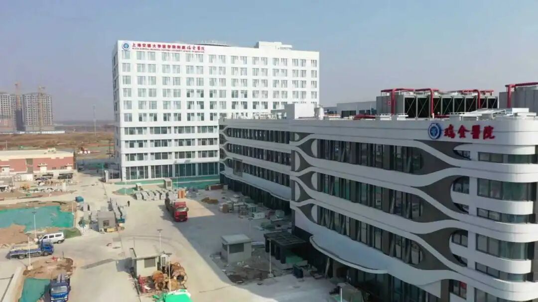 近日,记者来到瑞金医院金山院区的施工现场,看到医院的外立面幕墙工程已基本完工,正在进行内部装修与设备安装工作。