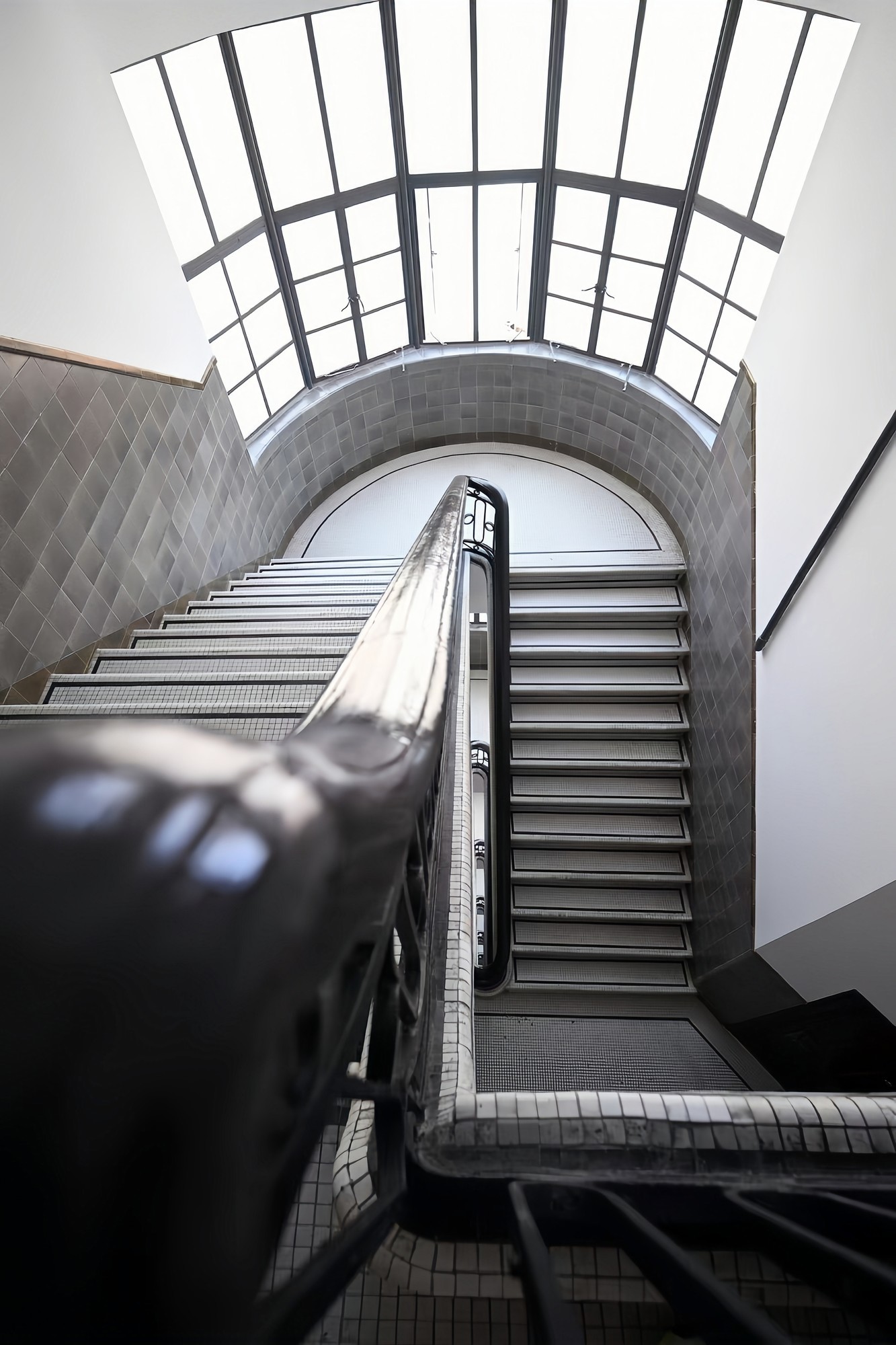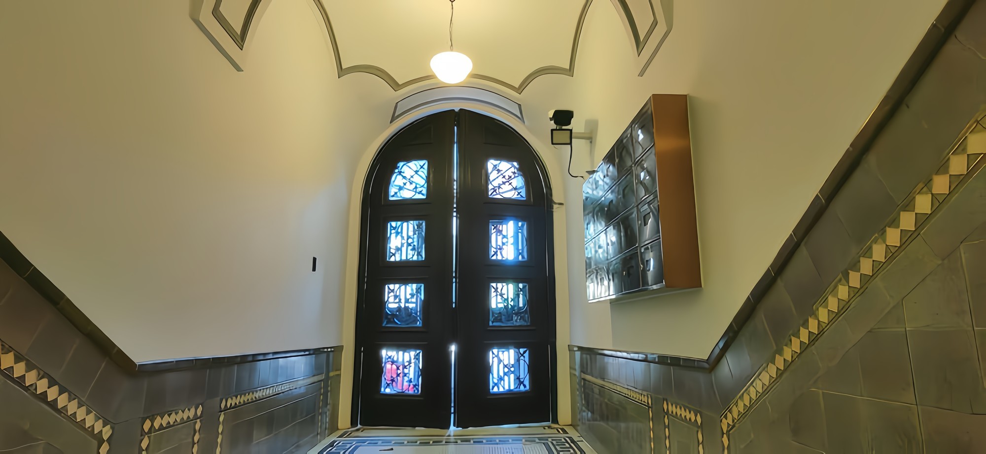 为了匹配建筑原始风貌,团队对墙面11种不同样式的釉面砖进行逐一排查、取样,联系专业厂家定制复刻,确保每一块砖的纹路、色泽都与原建筑保持一致;针对室内18000余粒马赛克地坪,施工人员放弃机械作业,全部采用手工打磨做圆角处理;就连楼道内早已损坏的“椰子形”吊灯,团队也通过查阅历史资料、寻访老工匠,以纯手工方式复刻还原。