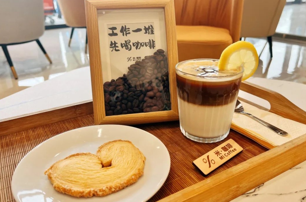 一楼的农产品展销区供应当季新米,一旁的“米・咖啡”吧台更是跨界惊喜——用醇香的米汁调和现磨咖啡,清甜与浓郁交织,赋予“农耕味觉”全新体验。