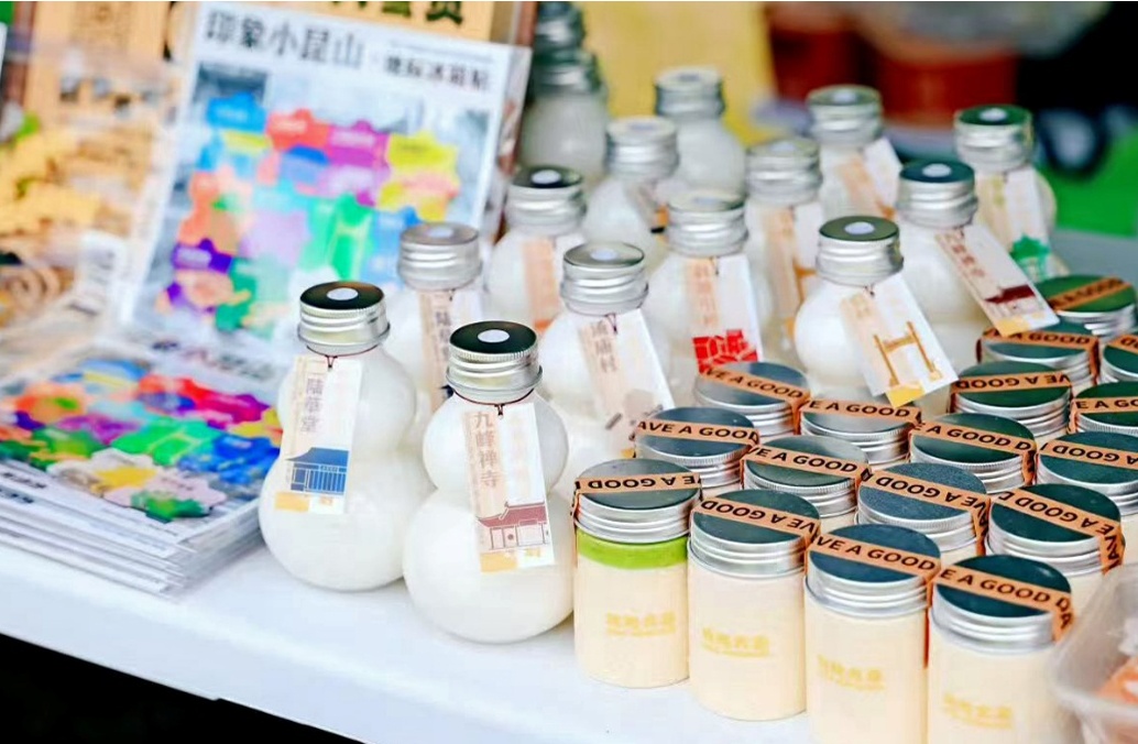 紧邻观稻亭的抱抱大米,是“95后”主理人陈瑜斌返乡创业打造的综合性空间。这里不仅能品尝到松江大米酿造的米浆、米乳、米拿铁,还有以小昆山命名的 “稻风山咖”,每一口都饱含本土风味。文创区更是亮点纷呈,“小昆山十景” 拼图冰箱贴、地标印章等产品,将本地景点与历史文化融入现代设计。