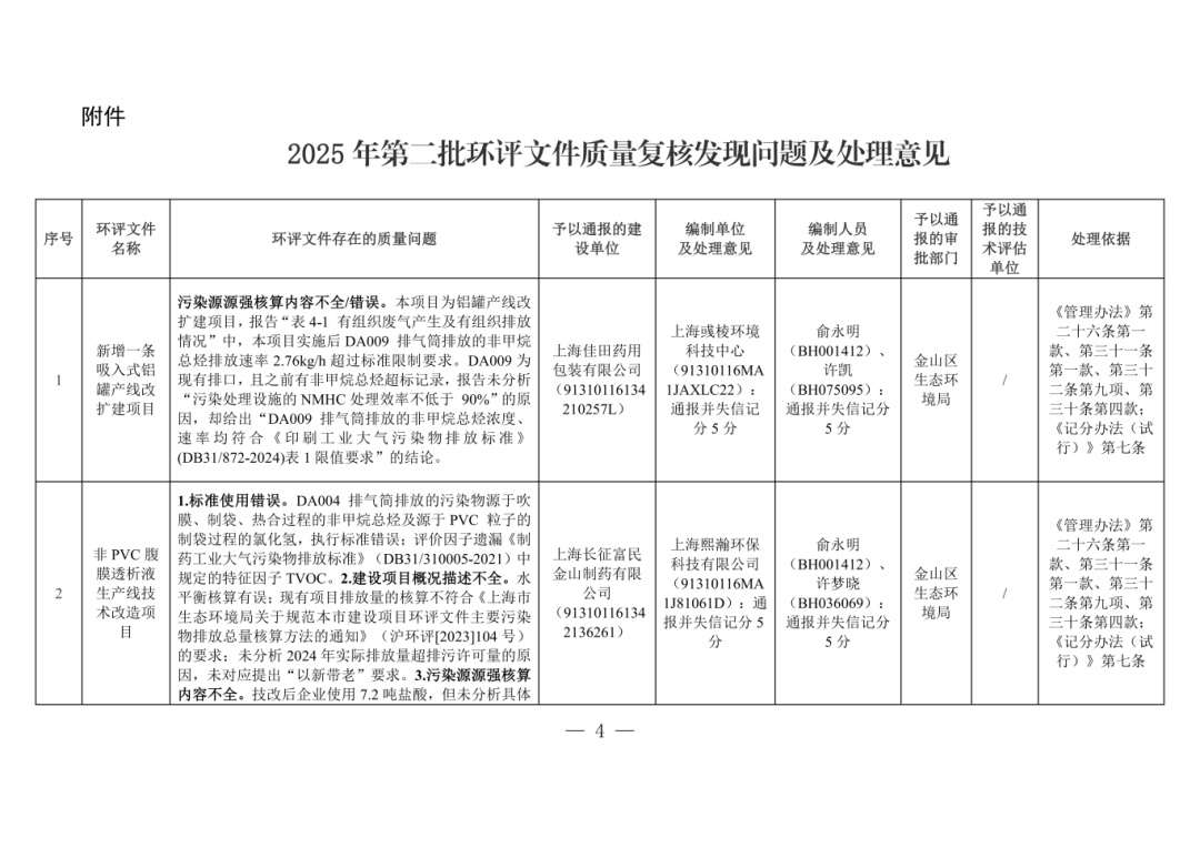 点击阅读原文,查看《上海市生态环境局关于2025年第二批环评文件质量复核发现问题及处理意见的通报》(沪环评〔2025〕185号)