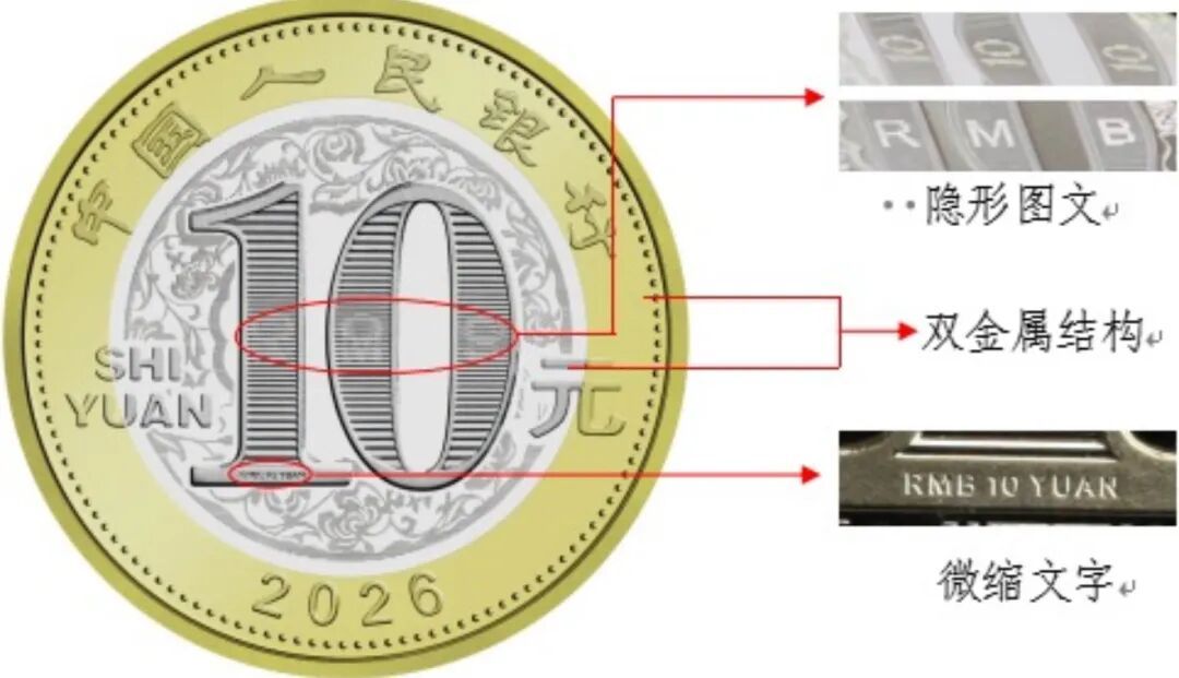 1.2026年贺岁双色铜合金纪念币公众防伪特征