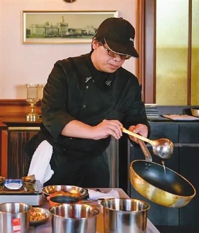 记者注意到,鲁效周在整个烹饪过程中,不论是撒盐撒糖的姿势、烹调的手势,都很是“潇洒”,看似轻轻松松却又恰到好处。他说,初学厨艺时,从基本功开始样样练习,十几年的扎实功底,站在灶台前就能施展自如。