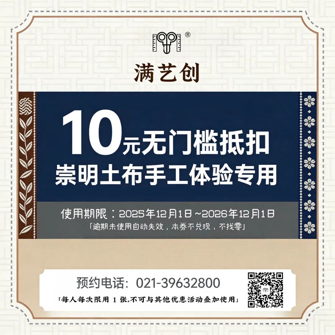 每一份「踏花福马」立体相框内,都藏有10元无门槛手工体验抵扣券!欢迎前往「布土文创 • SPACE」亲手解锁崇明土布的非遗魅力,记得提前预约哦~
