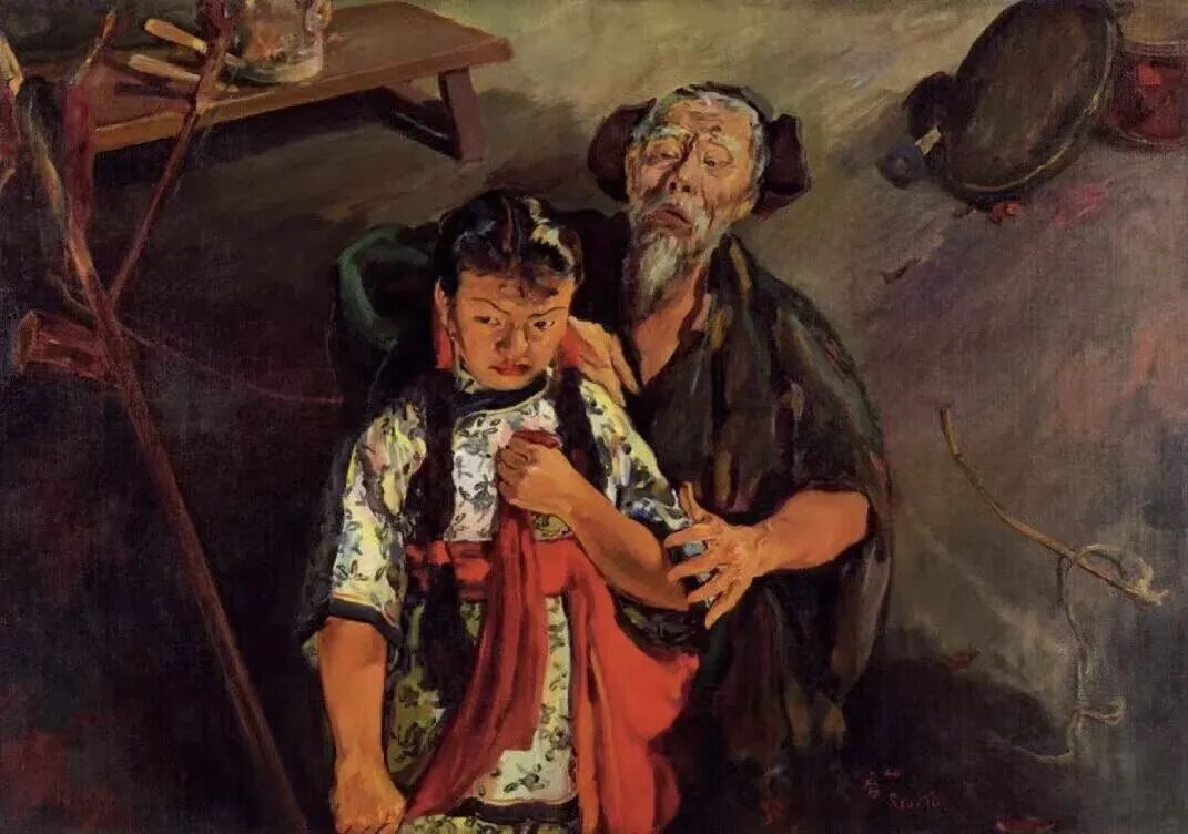 曾留学加拿大的广东油画家余本的名作《奏出人间辛酸》这次也出现在中华艺术宫。余本擅长表现行乞者、餐厅洗碗工、车夫、街头艺人、苦力……等社会底层人物。《奏出人间辛酸》以简洁、准确、有力的笔触和古典油画的“酱油色”,塑造了一位在艰辛的劳作之余以二胡抒发悲苦心声的海外华工的形象:三角形的构图,画面人物裸露的充满有力的肌肉的胳膊和紧绷的琴弓之间形成富于张力的对比,营造出特有的悲伤气氛。