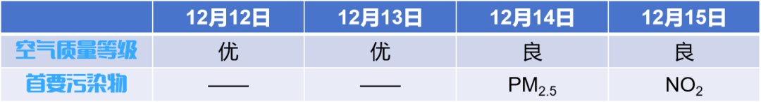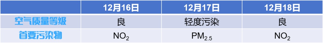 12月12日至12月18日徐汇区空气质量等级及主要污染物: