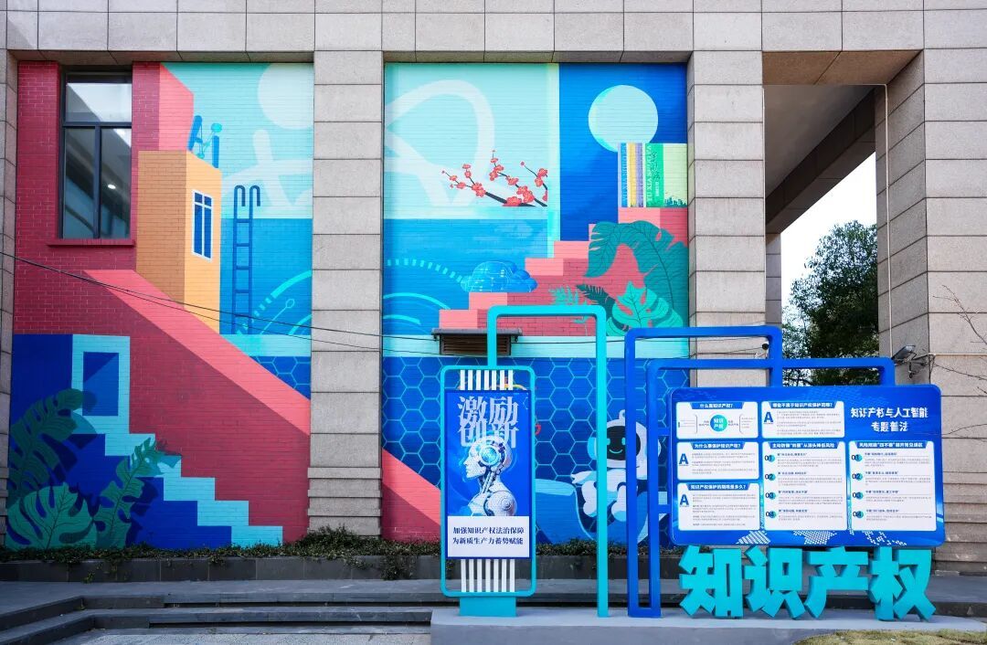 街区的核心亮点之一,是位于司法所对面的法治口袋公园。公园以寓意“营商环境没有最好,只有更好”的莫比乌斯环雕塑为核心,环绕布置了“法治护企全周期成长”法治驿站,通过生动案例与简明问答,为企业从初创到退出的全生命周期提供贴心法律知识指引。法治口袋公园里还特设“知识产权保护”信息亭,强化企业创新主体地位,完善新兴领域知识产权保护制度。连接司法所与派出所路面的特色法治地砖,铭刻着虹梅深入践行新时代“枫桥经验”精神的实践智慧。