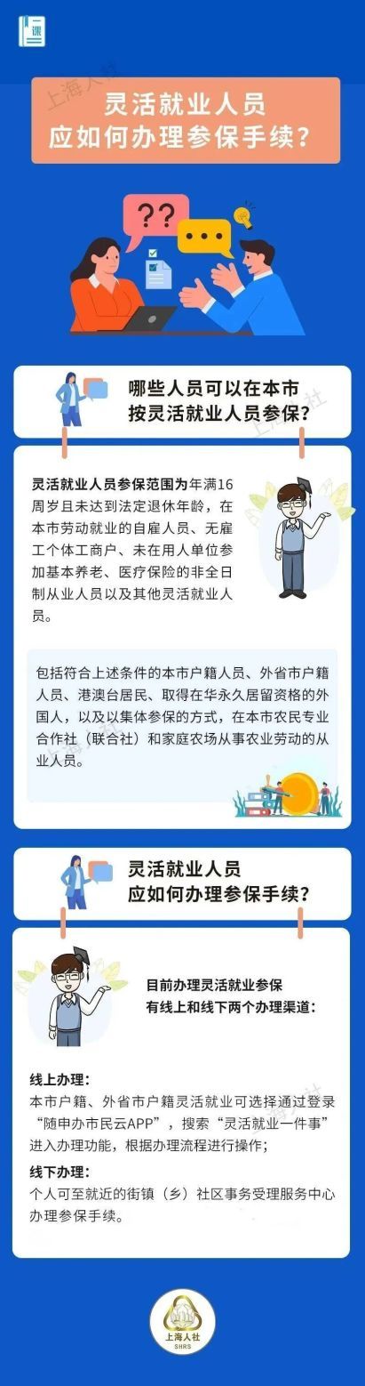 灵活就业人员应如何办理参保手续?灵活就业人员参保险种和缴纳比例是什么?灵活就业人员的社保费断缴了,可以补缴吗?灵活就业人员在本市中断缴费会影响缴费年限吗?找到上班单位时,正在缴纳灵活就业该怎么退出?关于灵活就业人员参保的这些问题,来看市人社局的解答↓