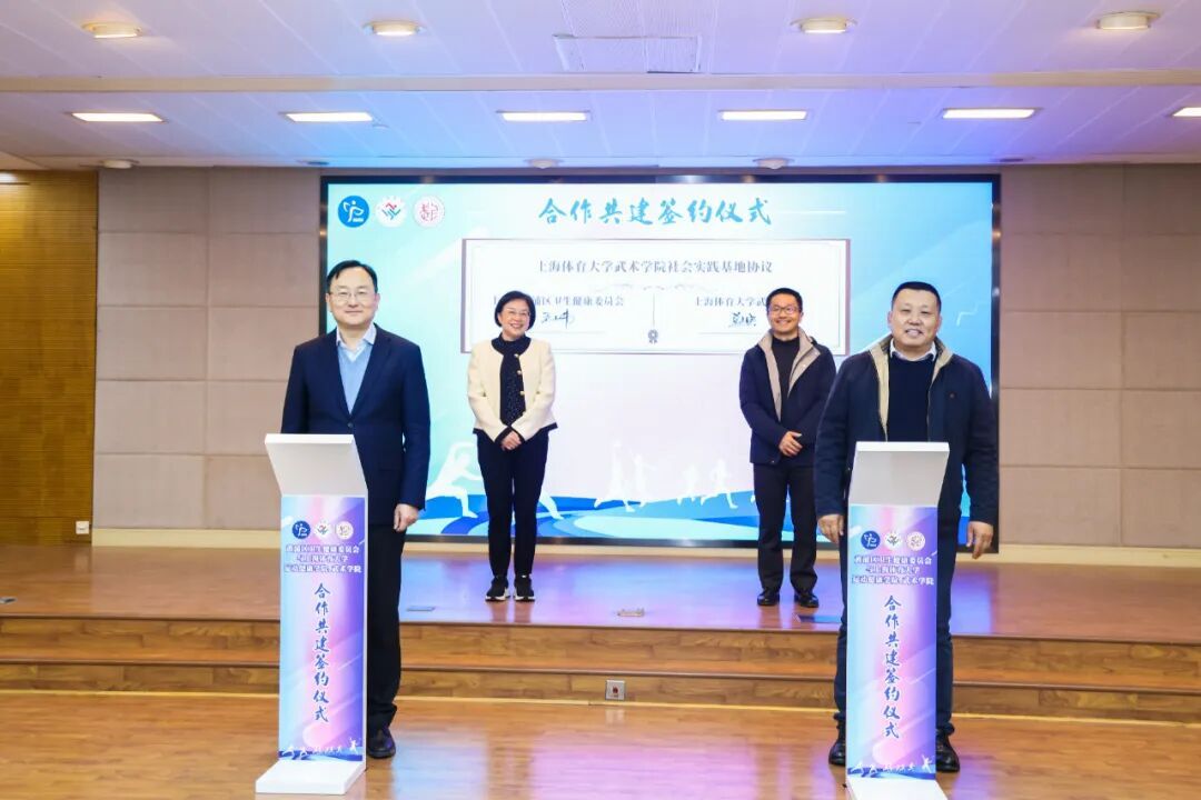 12月22日,黄浦区卫健委与上海体育大学运动健康学院、武术学院合作共建签约仪式举行。黄浦区副区长袁园、上海体育大学副校长魏建军出席并讲话。