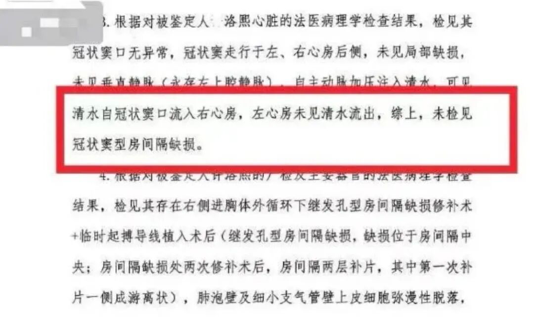 12月20日,“小洛熙”的妈妈在社交平台公布了小洛熙的部分尸检报告,报告称未检见冠状窦型房间隔缺损,综合分析认为,被鉴定人洛熙符合因继发孔型房间隔缺损行修补术并发心力衰竭、呼吸功能衰竭而死亡。12月21日,“小洛熙”妈妈在接受记者采访时表示,后续将开展医疗事故鉴定。12月22日,媒体致电宁波大学附属妇女儿童医院获悉,目前该院小儿胸心外科住院部已关闭,手术也已暂停。