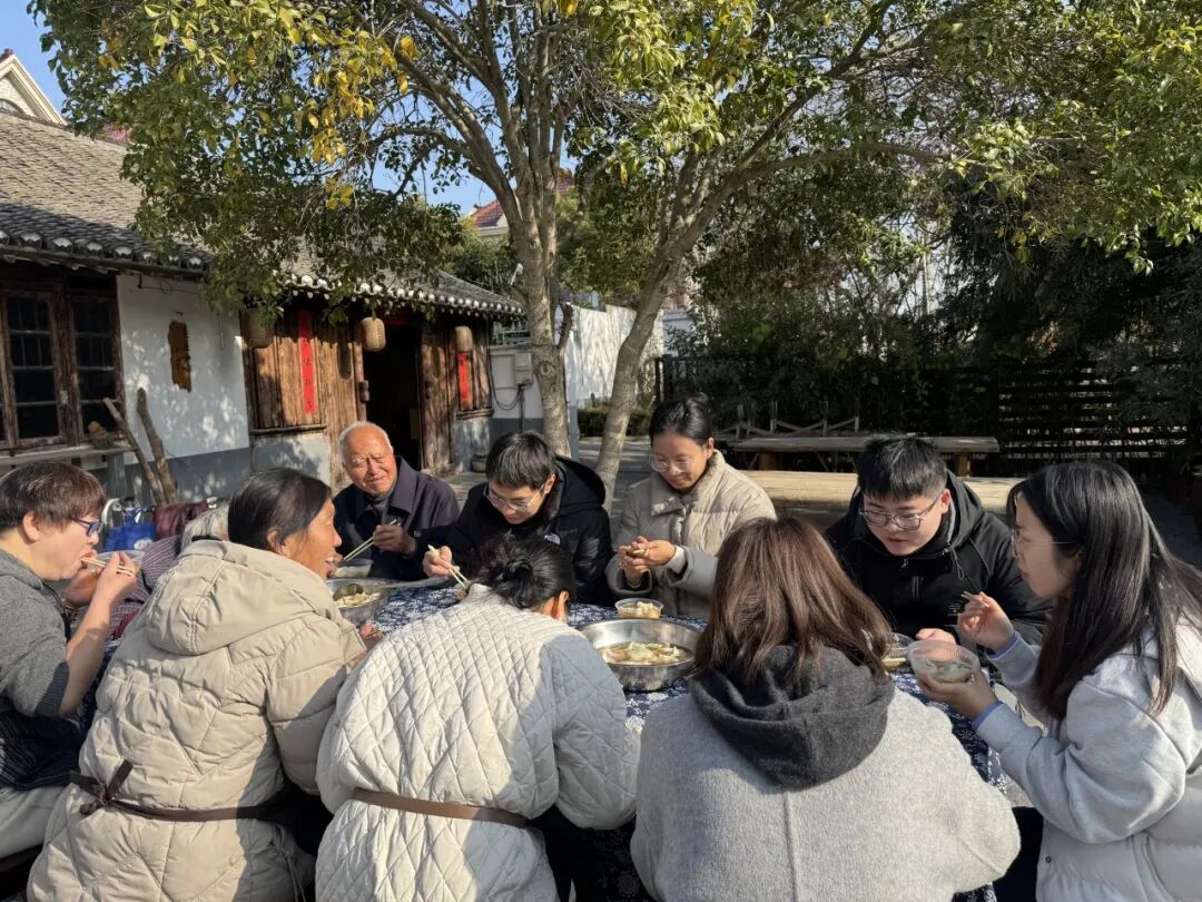 近日,洋桥村党支部精心策划,举办了“沪苏同包一碗连心馄饨”活动,邀请浏南村青年干部们共同走进田间地头,亲手挑挖鲜嫩荠菜。随后,青年们齐聚洋桥村西杨宅百年老屋,围坐一堂,在笑语中切磋着虽略有差异却心意相通的馄饨包法。从切菜、和馅到成型,每一个环节都成了交流与协作的生动课堂。最终,一锅凝聚着沪苏两地心意与手艺的馄饨,在老灶上升腾起氤氲热气,被分送至两村高龄长者手中。这碗馄饨,也超越美食本身,成为连接两地情感、深化党群关系的温暖载体。