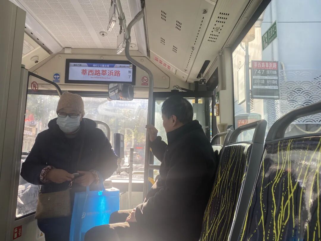 公交车驶离起点站,沿沪光路、莲花南路到务本路前行至景香苑西门时,张先生走上车。“以前要走至少1公里到莲花南路坐闵行15路,下雨天路滑不安全,现在家门口就能坐车,太方便了!”老先生坐稳后忍不住分享,还特意表示自己到站也不下车,要全程体验一遍新线路。