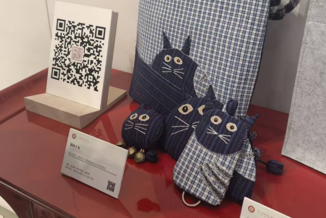当地手艺人不断探索,将土布与现代审美相结合,开发出各式各样的文创产品和时尚服饰。值得一提的是,廊下土布作品曾多次走出国门,开展文化交流,甚至还通过中国国际进口博览会向世界展示了中国传统手工艺的魅力。在第八届进博会的“上海非遗客厅”内,廊下土布制成的猫萌系列布包和小挂件,因其可爱的造型和独特的文化内涵,吸引众多观众驻足欣赏。