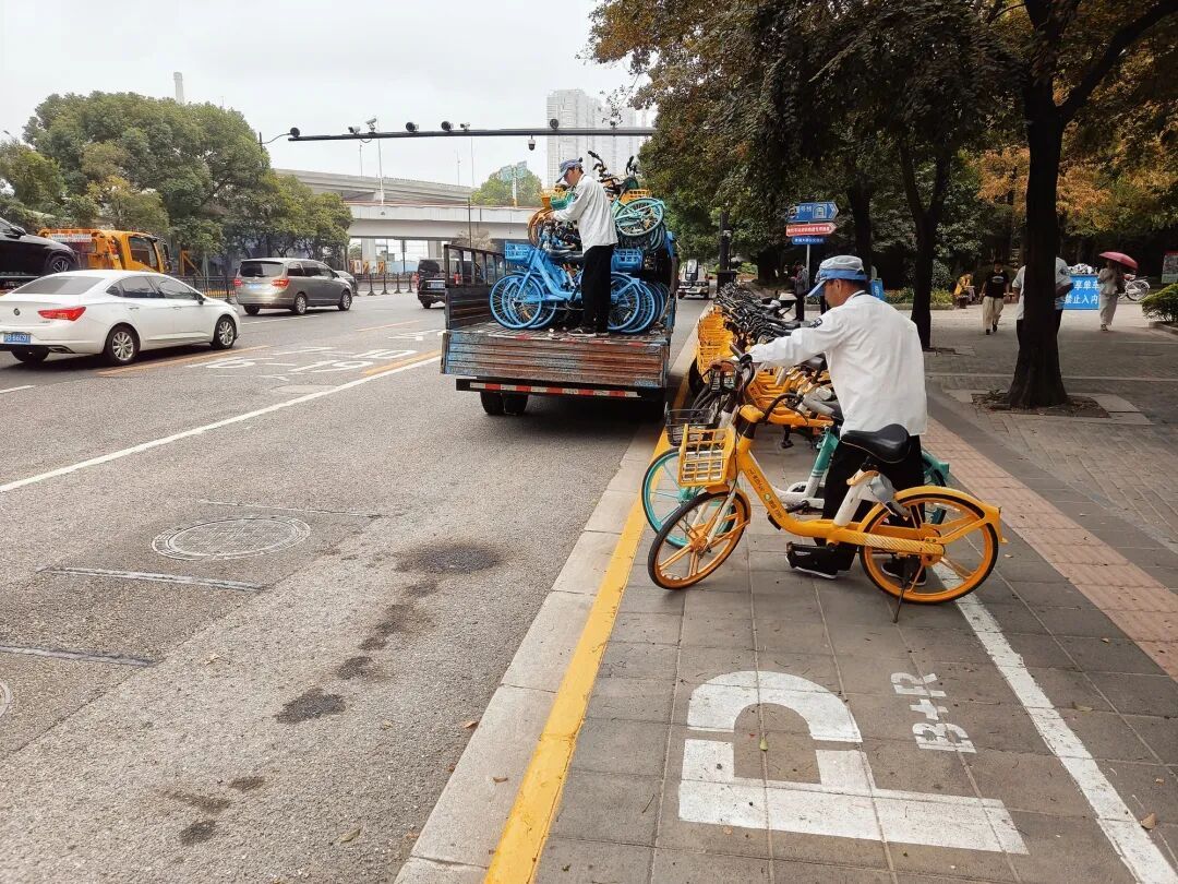 在规划布局上,坚持“还路于民”原则,对人行道不足3米的路段取消非机动车停车区域,在中华路、董家渡路等路段科学设置共享单车停放点和禁停区,通过电子围栏技术规范车辆停放。