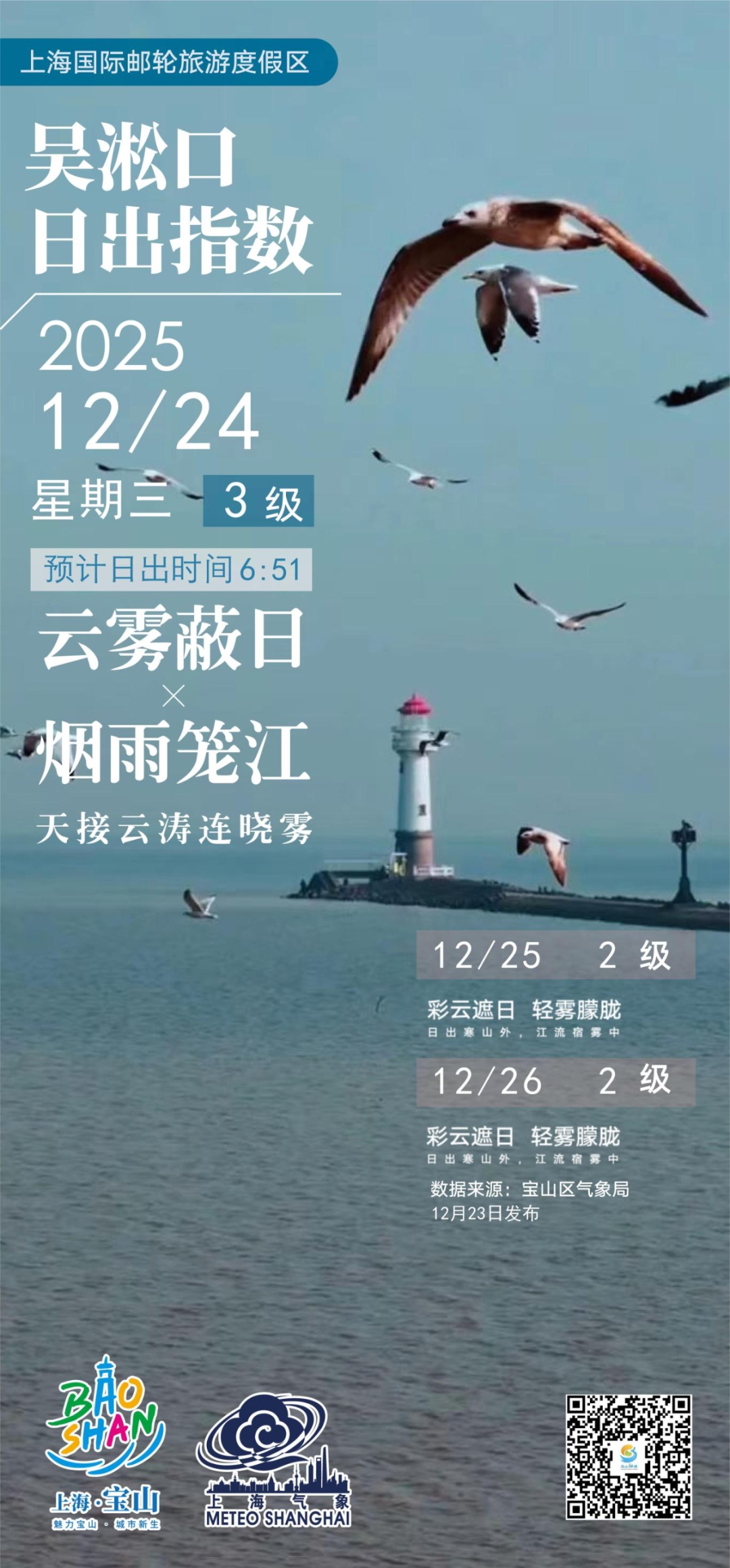 【吴淞口日出指数】12月24日3级 云雾蔽日×烟雨笼江