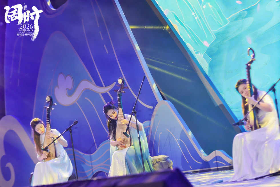 “相约怒江 畅享阔时”主题文艺晚会,堪称本次活动的高光时刻。怒江职业技术学院学生将龙舞培训成果精彩呈现,刚劲有力的舞姿里,是峡谷青年对中华传统文化的热爱与诠释。浦东派琵琶传承人携经典曲目《龙船》登场,加入茉莉花曲调的婉转琴音搭配飘逸水袖独舞,同时融入傈僳族《祝酒歌》,引得全场共鸣合唱,奏响跨地域文化交融的动人乐章。