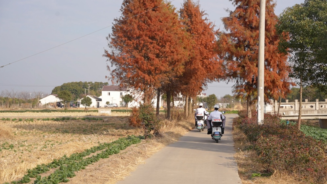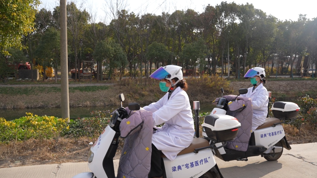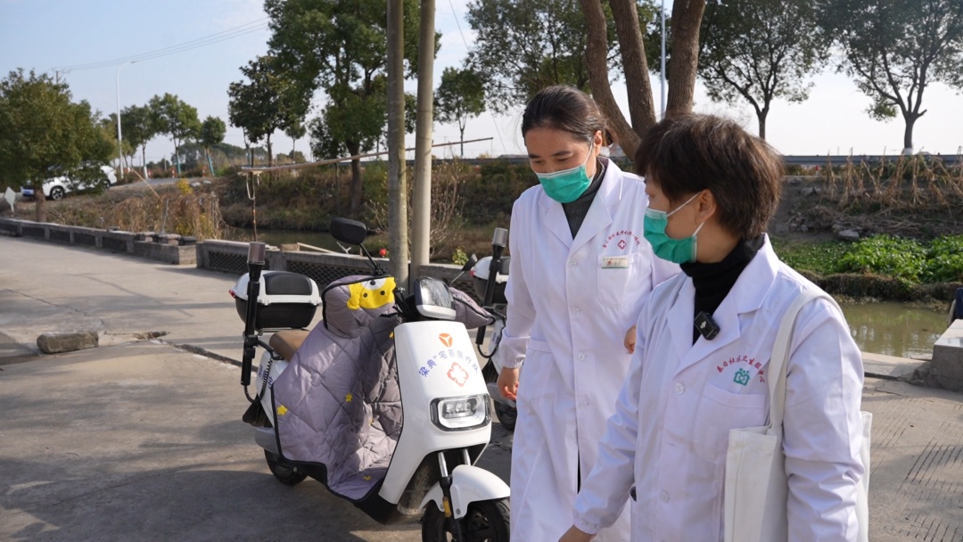 日前,金汇镇梁典村的乡间小路上,金汇镇泰日社区卫生服务中心的家庭医生韩春燕和乡村医生背着诊疗箱,骑着电瓶车又一次前往98岁陈老伯的家。近日老人血压波动频繁,让巡诊团队格外关注。