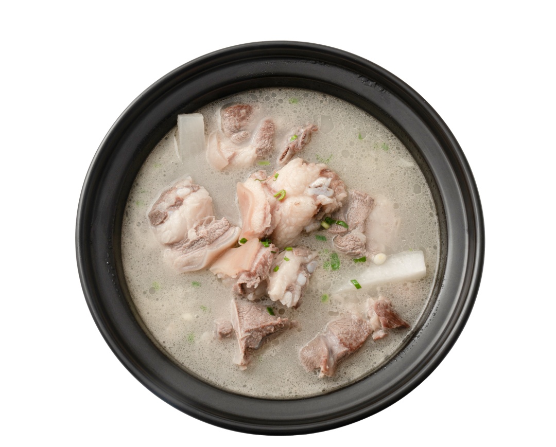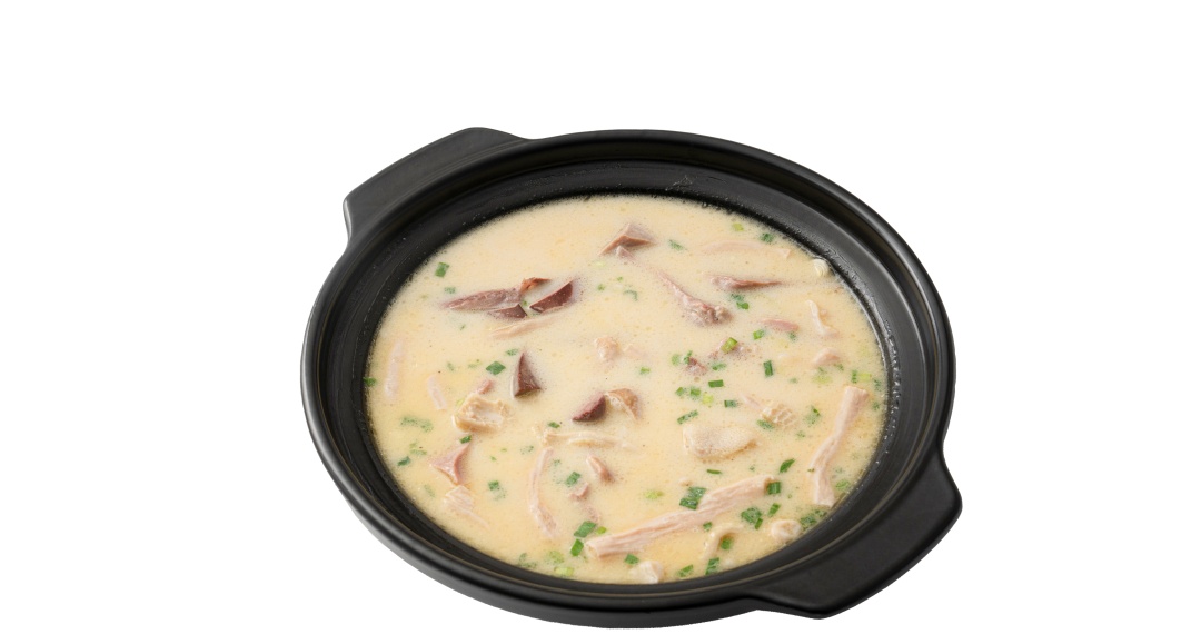 精选松江自产自销的歧创古松黑山羊,取带骨羊肉以清水慢炖,汤底乳白醇厚,毫无膻味,羊肉酥烂鲜嫩,充分释放温润本味。