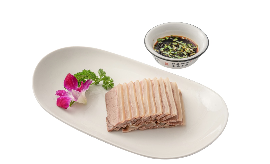 白切羊肉,最大程度呈现本真之味。将羊肉文火慢炖数小时,熟而不烂,冷却后切薄片。肉质鲜甜,紧实弹牙,肥而不腻。