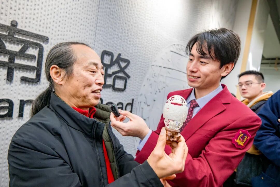 通南路站的暖浅木色站厅中,一组精美的蛋雕雕塑成为全场焦点。活动特别邀请蛋雕非遗传承人亲临现场,在蛋壳上精雕细琢,指尖流转间展现传统技艺的匠心魅力。传承人详细解读了站名墙蛋雕作品的创作灵感,将淞南非遗文化与地铁空间有机融合,让 “铁丝” 们在探访新线的同时,感受传统文化的鲜活生命力,实现了交通出行与文化传播的双向赋能。