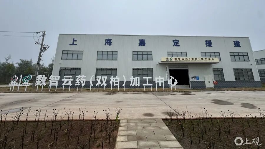 从双柏县人民政府一路向北,穿过清晨的薄雾,“数智云药(双柏)加工中心”的字样逐渐清晰。厂房上方“上海嘉定援建”的几个蓝色大字,很是醒目。
