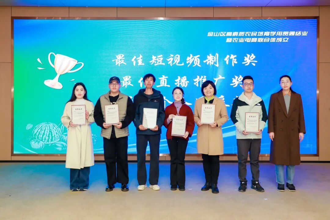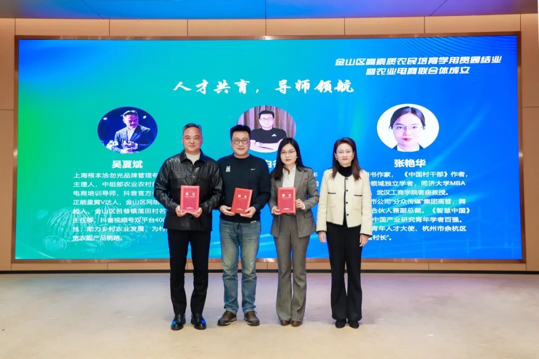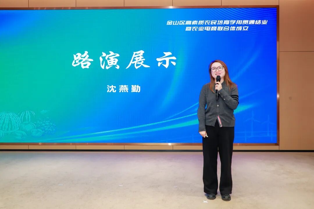此外,“金山区农业电商同创共富联合体”揭牌成立。区农业科技教育信息中心主任王庆华表示,将以这一批学员为核心,组建金山区农业电商联合体,推动他们在联合体中协作共赢,共同开拓电商兴农新路径。