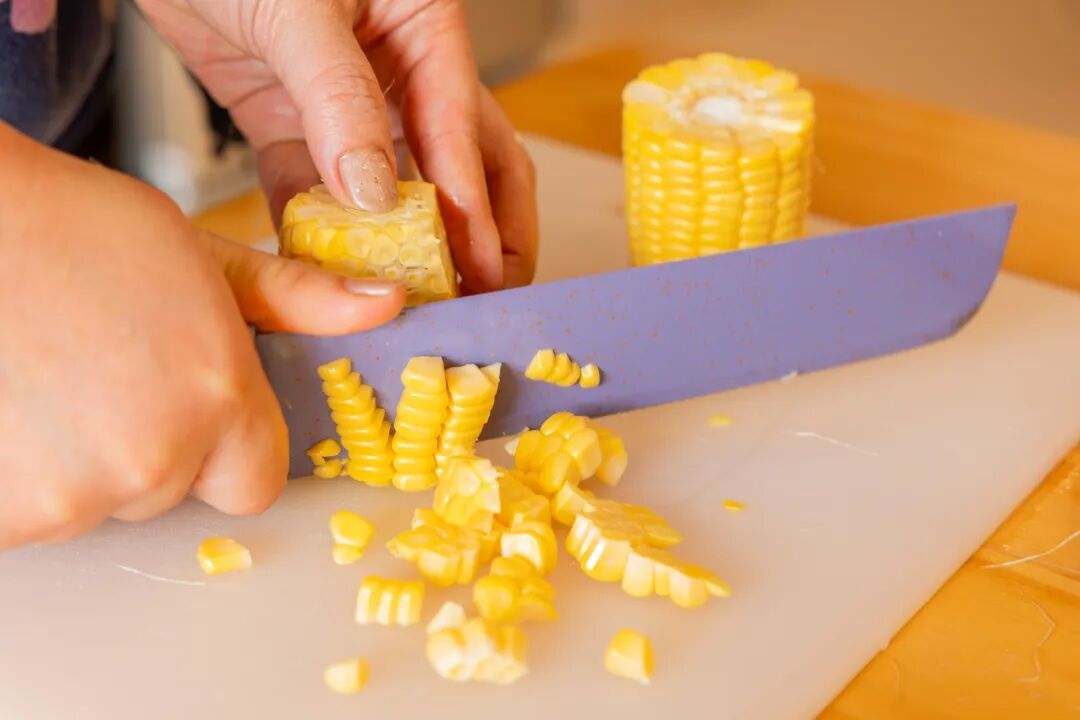 3.玉米粒切碎备用。