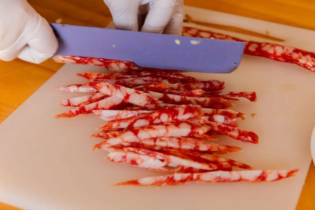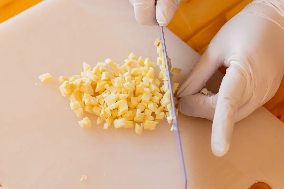 5.香肠切丁。