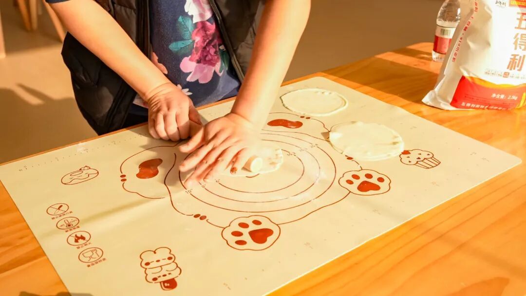 8.用擀面杖将饺子皮擀薄。
