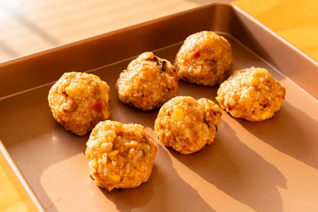 9.包入备好的糯米馅。