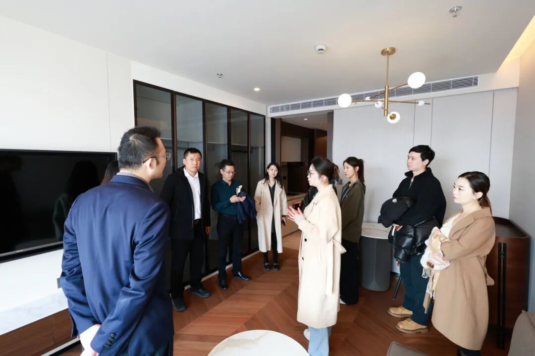 活动伊始,与会青年实地参观了苏河美欣公寓的样板间与公共区域,在资产管理公司副总经理茅茸蓉的介绍下,对公寓的空间设计、功能布局、家具配置及智能化设施进行细致了解,亲身感受现代人才公寓在有限空间中营造舒适度与功能性的设计巧思,也为后续的讨论提供了直观认识。