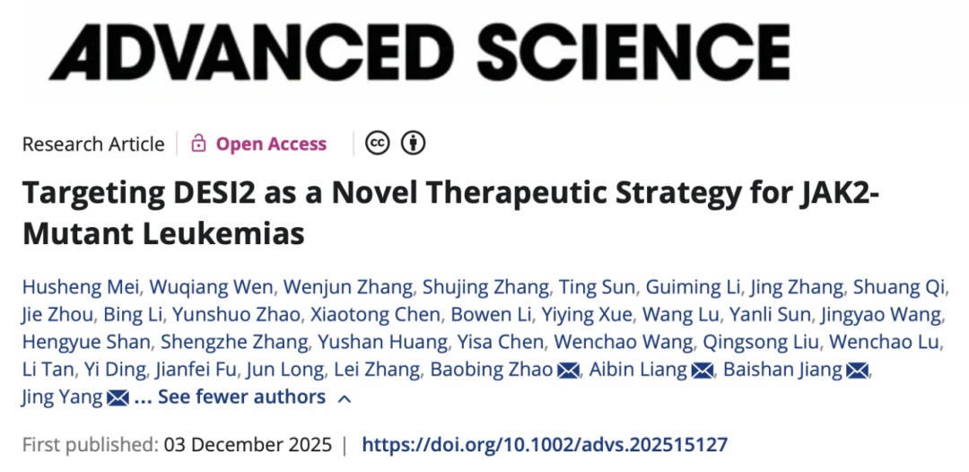 针对JAK2-V617F突变型白血病,现有靶向治疗正陷入“疗效短暂”与“耐药加剧”的双重困局。近日,生命科学与技术学院杨静、附属同济医院梁爱斌及其合作者联合研究成果发表于《先进科学》(Advanced Science)。该研究成功开发出能精准诱导突变蛋白降解的小分子抑制剂,不仅为这类难治性血液肿瘤提供了从“抑制”到“清除”的全新治疗范式,也为克服靶向治疗耐药开辟了切实可行的新路径。