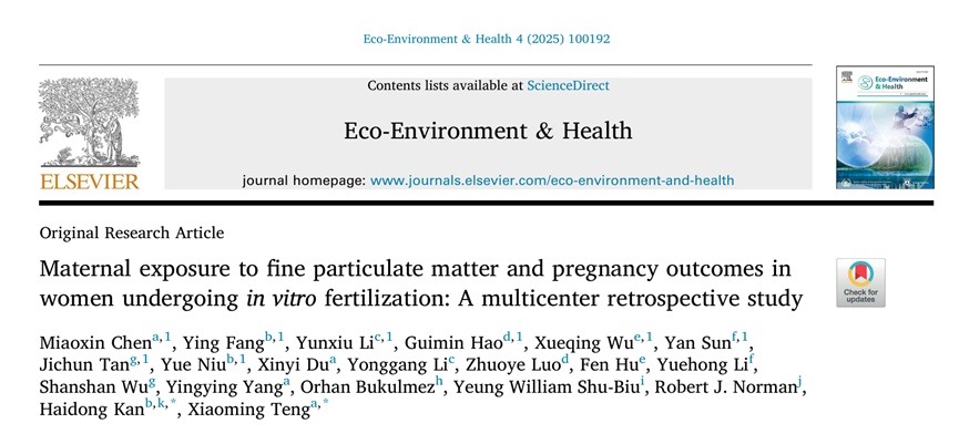 体外受精技术(in vitro fertilization,IVF)已成为治疗不孕症的重要手段,但其成功率受诸多因素影响。近日,附属妇产科医院滕晓明团队联合研究成果发表于《生态环境与健康》(Eco-Environment & Health)。该研究基于多中心、大样本人群数据,为环境PM2.5暴露降低IVF活产率提供了流行病学证据,进一步提示IVF治疗过程中采取颗粒物污染控制和公共卫生干预措施的重要性。