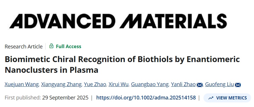 作为生物分子相互作用的核心,手性识别的深入探索对推动疾病早期诊断与精准医疗具有重要意义。近日,化学科学与工程学院刘国锋课题组与国内外合作团队研究成果发表于《先进材料》(Advanced Materials)。该研究发展了一种无需复杂前处理、可直接用于血浆样本分析的无标记检测方法,显著提升了生物硫醇检测的便捷性与临床适用性,为新型手性功能纳米的设计提供新思路。