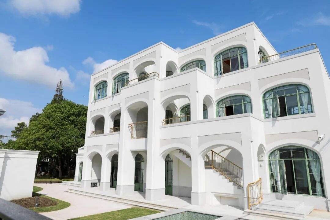 如果,你想感受一下南法风情,就一定不能错过HE墅林。浅白色法式别墅隐于绿意之中,拱窗与花园相映,仿佛电影场景。一层设有专属餐厅与会客厅,私密舒适;二、三楼的套房推开窗便是无垠田野,躺在床上也能望见风景。花园小径四季花开,散步其中,惬意悠然。