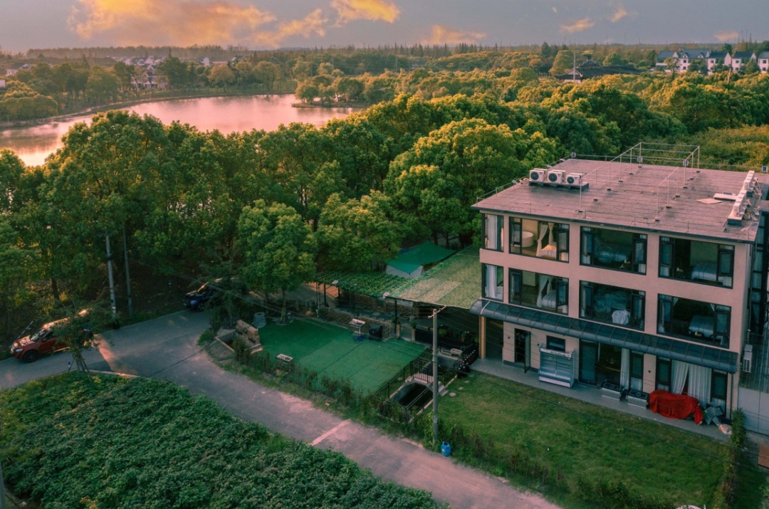 林里·玉兰湖壹号是沪郊首家森林主题民宿,由村民自建房改造而成。500余平方米的空间隐于玉兰湖畔,现代设计与原生态景观巧妙相融,不仅有影音室、茶室、戏水平台,还有儿童游乐区、垂钓池、篮球场、露天烧烤区,满足全家人的度假需求。住在这里,推窗即见翡翠般的湖水与千亩生态林,晨雾氤氲时宛如水墨画;入夜星河低垂,虫鸣伴眠,治愈十足。