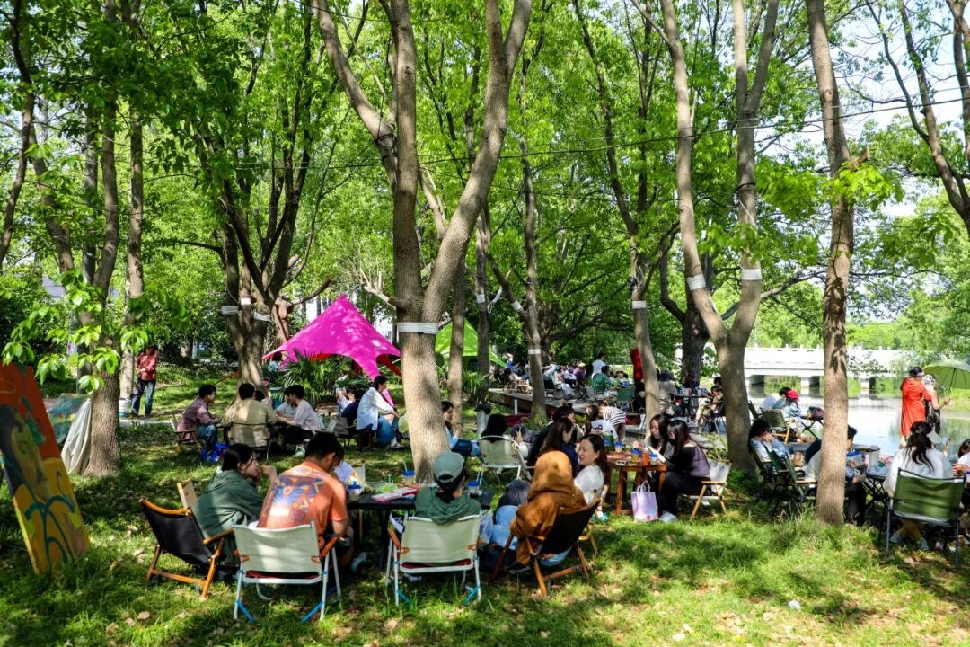 除了生态林的自然馈赠和特色民宿,百家村还打造了丰富的休闲配套。“和·咖啡”为市民游客打造了一个集休闲、娱乐于一体的“林间小驿站”,不远处的“和·蝶舞”蝴蝶馆则是自然爱好者的乐园。当然,作为金山区打造的“宠物友好村”,这里也欢迎毛孩子一同前来度假撒欢,共享自然之乐。