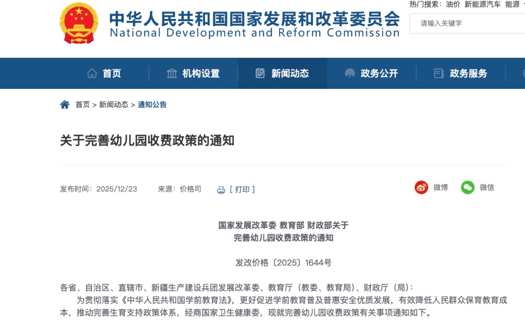 12月23日,国家发展改革委、教育部、财政部联合印发的《关于完善幼儿园收费政策的通知》,对幼儿园的收费规范做出明确要求,幼儿园可以收取保育教育费、住宿费、提供托育服务的保育费、服务性收费、代收费等5类项目。
